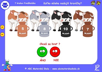 7.HRA USB Kravička – Priraďovačka - Koľko mlieka nadojili kravičky?