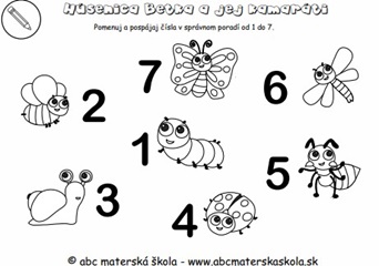 Strana    1 - Húsenica Betka - Pomenuj a pospájaj čísla v správnom poradí.