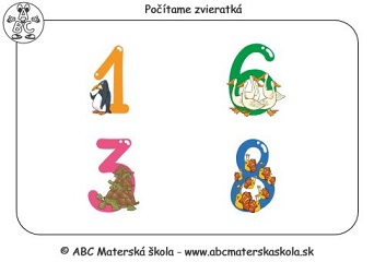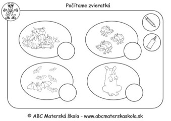 Strana 1 – Počítame zvieratká - pomenuj a počítaj zvieratá, porovnávaj počet, urči číslicu