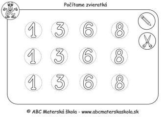 Strana 7 – Počítame zvieratká - vystrihovačka - vyfarbi, vystrihni a dolep čísla