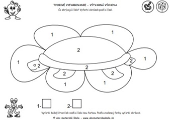 Strana 1 – Tvorivé vyfarbovanie - Korytnačka - Vyfarbi obrázok podľa čísel. Pomenuj obrázok.