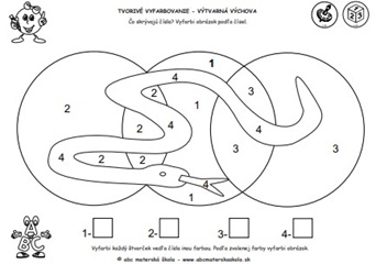 Strana 2 – Tvorivé vyfarbovanie - Had - Vyfarbi obrázok podľa čísel. Pomenuj obrázok.
