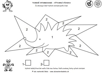 Strana 3 – Tvorivé vyfarbovanie - Ježko - Vyfarbi obrázok podľa čísel. Pomenuj obrázok.